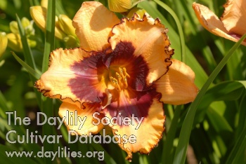 medium carrot orange with dark mahogany eyezone and matching picotee edge, petals gently pleated, eyezone irregular at edge