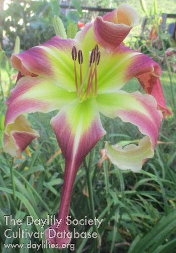 Burgundy blend with extended yellow green throat.