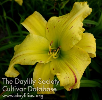 Light banana with red streaks and splotches, with green throat.