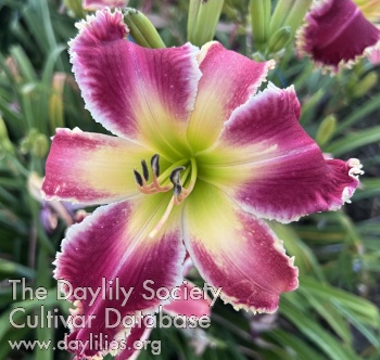 Red, toothy white edge, yellow green throat.