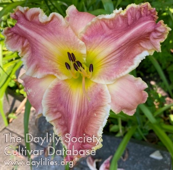 Rose blend with yellow eye, green throat and ruffled edge.