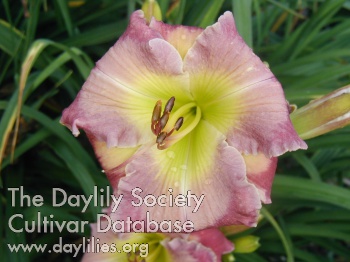 pale cranberry lavender grape, chalky lavender eye, chalky lavender edges, yellow to green throat