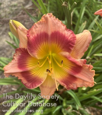 Light pink with rose eye above yellow to lime green throat.