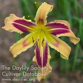 Melon with purple eye, light midribs and yellow green throat.