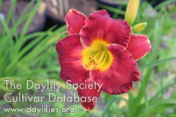 Red, lighter eye, golden edge, green throat.