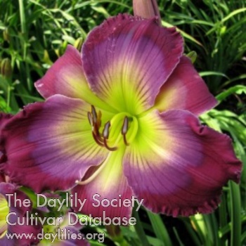 Wine petals with grape purple eye that radiates into the green throat.