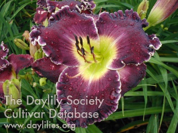 dark purple with eye that alternates between light lavender purple and merlot, small white edge, green throat