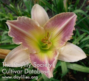 rose pink edged ivory and cream brushed pink bicolor with creamy yellow green throat