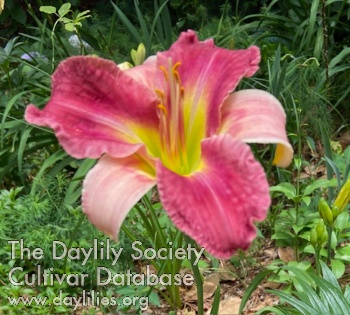 Rose and pink bitone, extended green throat.