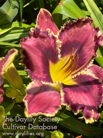 Purple with dark purple eye, yellow throat and white edges, diamond dusted.