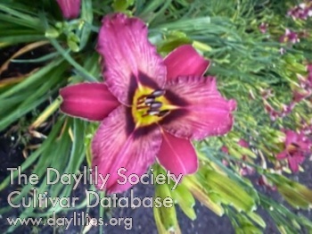 Reverse Bicolor, pale pink petals, burgundy sepals, with a dark band above a green throat.