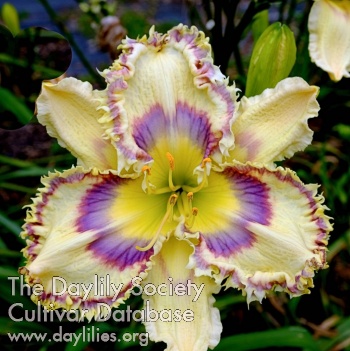 Cream with complex eye and edge, white teeth, yellow throat.