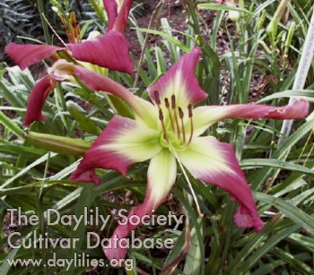 purple with white midribs above vivid green throat