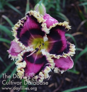 Royal purple with a black purple eye and edge with bold cream white teeth.
