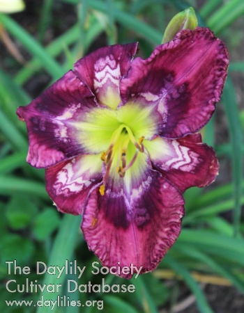 Deep rose purple with multipatterned eye of white and black purple, green throat.