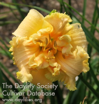 Yellow, cream, and pink polychrome edged with yellow white fringe and teeth over a yellow to green throat.