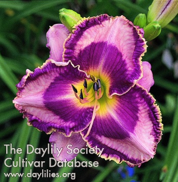 lavender with violet purple eye and edge above yellow to green throat