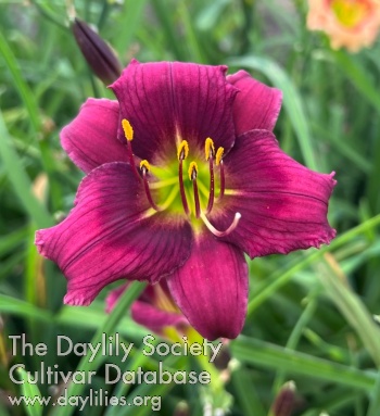 Raspberry purple with darker eye and neon green throat.