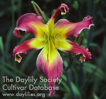 rose madder with lighter edges and burgundy wine halo above yellow green throat