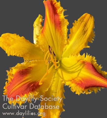 Yellow petals and sepals with brushed red orange overlay, yellow teeth on petals and sepals.