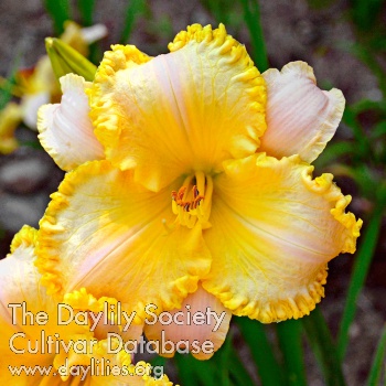 Yellow cream to canary yellow in center and edge, yellow to green heart.