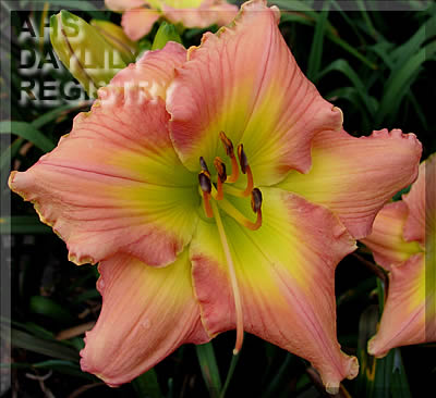 peach with pink blush above large triangular green throat