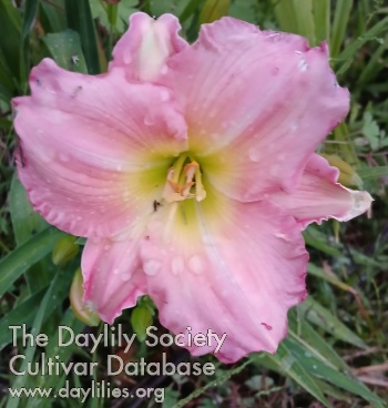 Rich rose pink, ruffled petals, green to yellow throat and raspberry veins.
