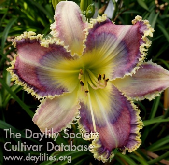 Rose bitone with blue eye and edge, yellow teeth, and yellow throat.