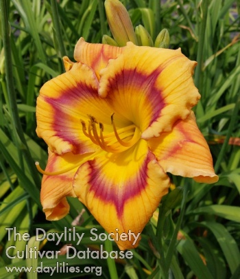 Orange with purple lavender eye and orange throat.