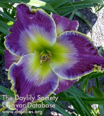 lilac eye on purple lavender petals with bitone edge of lilac and gold above a green throat