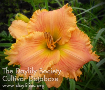 soft tangerine petals surrounded by large and small yellow teeth, small green throat