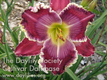 cranberry, cranberry etched chalky lavender eye, chalky lavender plus ivory white edge, yellow to green throat