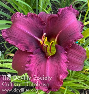Dark magenta with black shadings above an intense green throat.