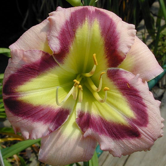 A darker colored area just above the throat of a flower, on the petals only. If the band of color also appears on the sepals of the flowers, it is called an eye.