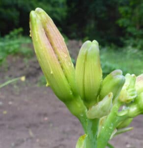 Bud bumps (enations) are small projections common on daylily flower buds. Pests might cause bud bumps and they are commonly attributed to thrips, however, scientific studies have not yet determined the true cause of these bumps.