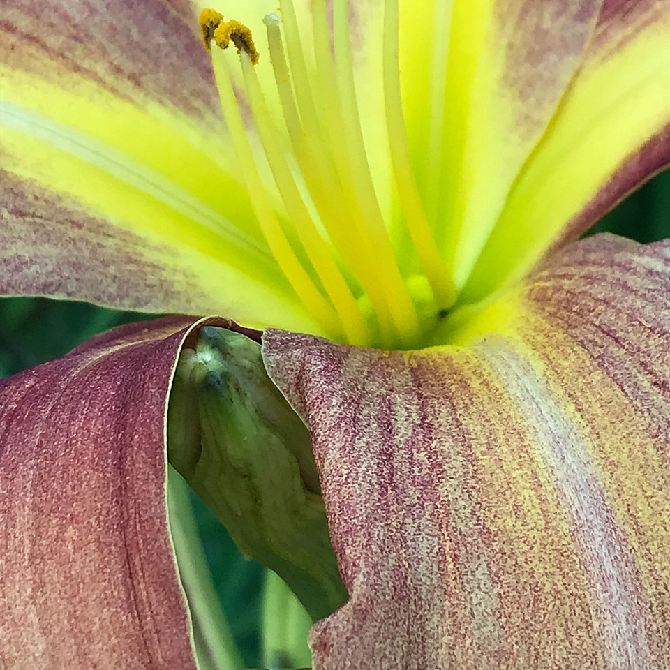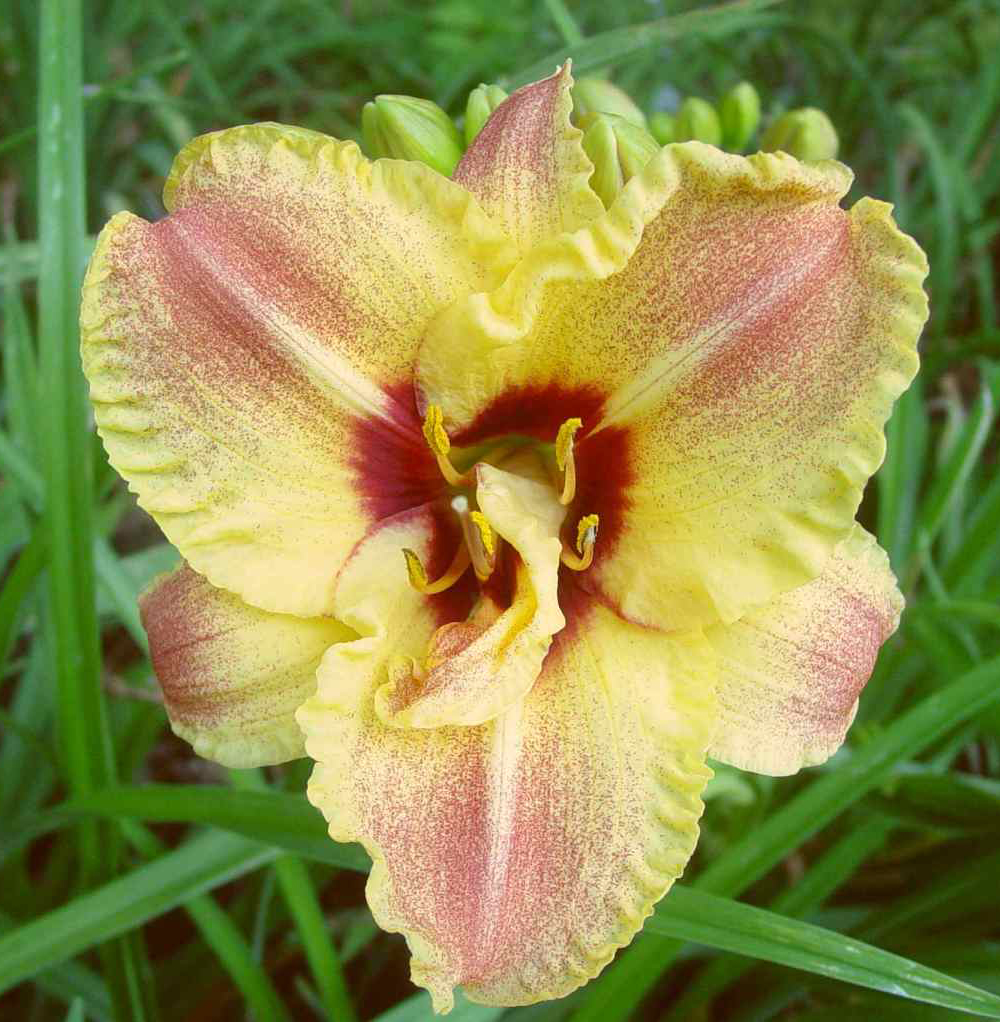 On daylily flowers, stippling usually refers to small dots which may occur in the eyezone, over the entire surface of the tepals, along the edge of an eye, or only at the tip of the tepals.